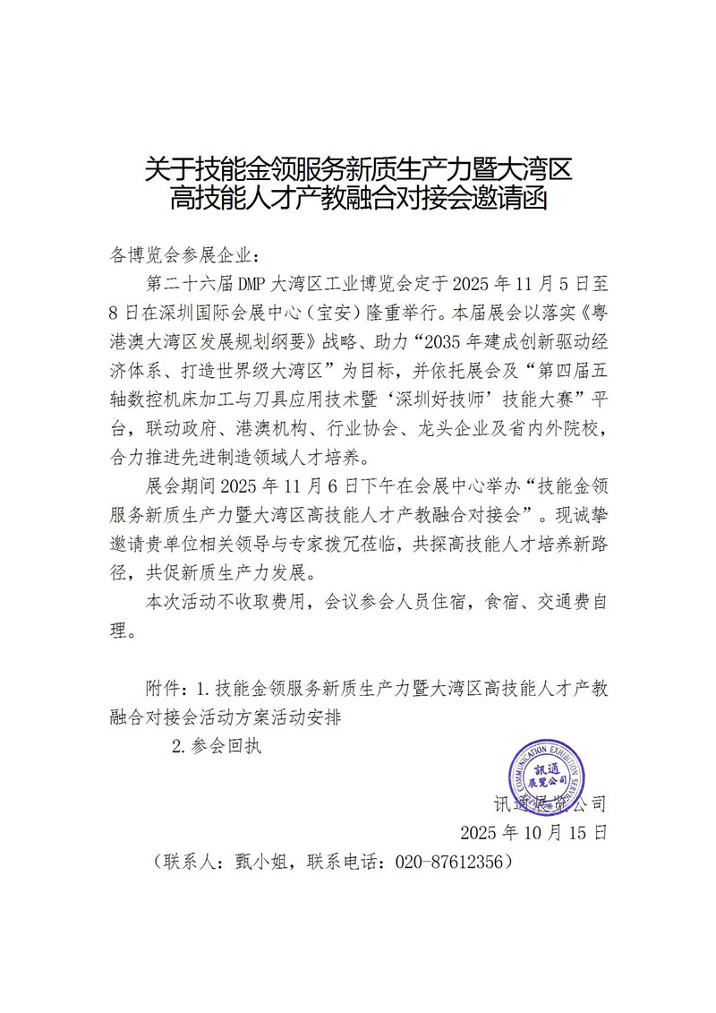 近日,“十五五”规划公布,将全链条推动集成电路、工业母机、高端仪器、基础软件、先进材料、生物制造等重点领域。当前大湾区新一代工业母机产业人才缺口显著,部分领域中高端技术人才的短缺制约企业转型升级。对接会搭建起企业与高技能人才的精准对接平台,通过产教融合机制衔接人才培养与产业需求,既让企业快速获取适配的 “技能金领”,为技术转化与产能提升注入动力,又为人才提供清晰的职业发展路径。