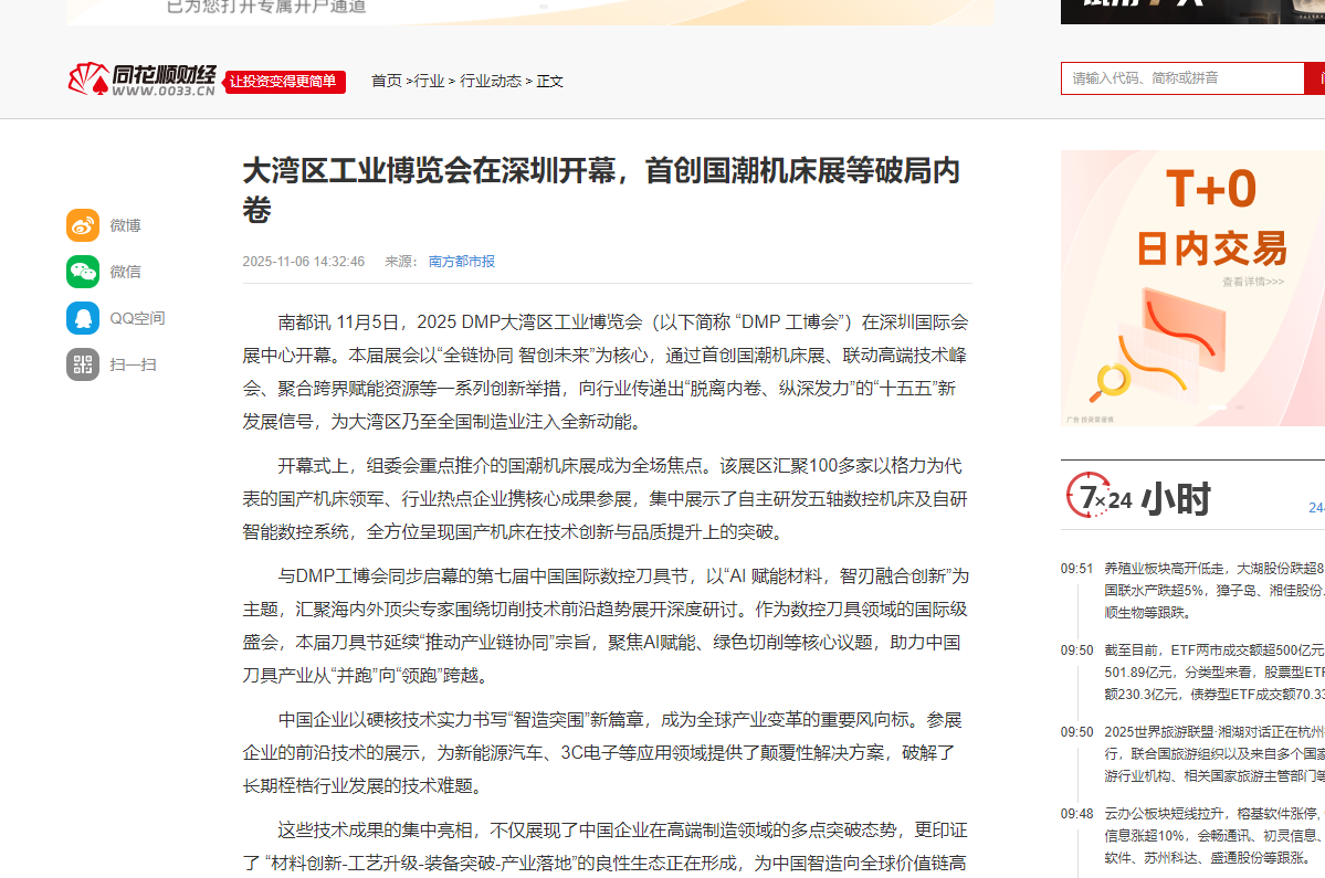 【同花顺财经】大湾区工业博览会在深圳开幕,首创国潮机床展等破局内卷