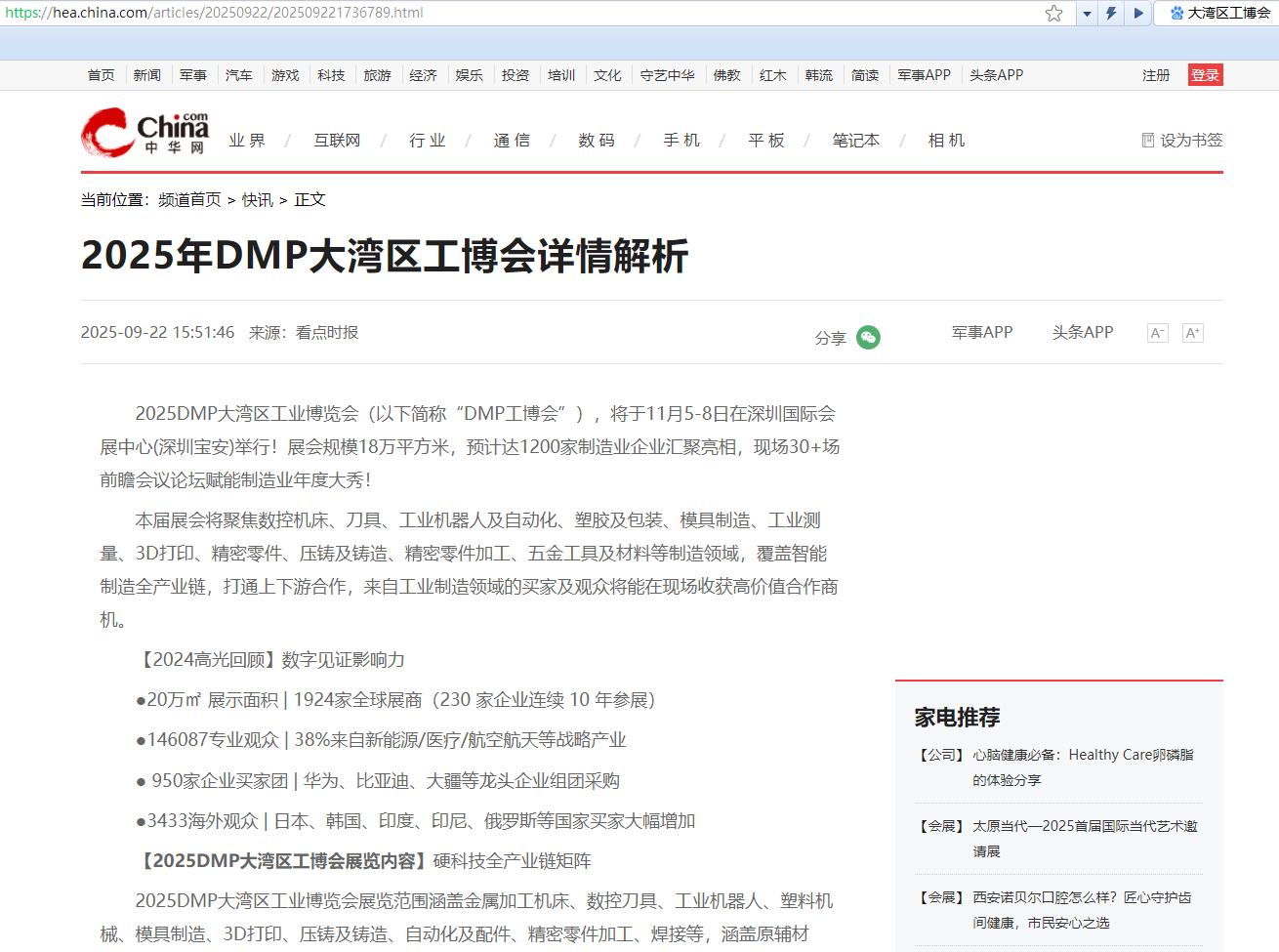 这里有权威的媒体(电视台、网络媒体、报刊杂志等)、行业影响力媒体关于展会的报道,供您了解DMP大湾区工博会的影响力。