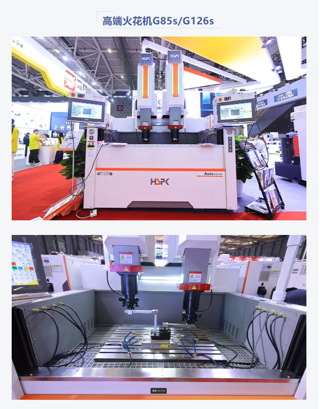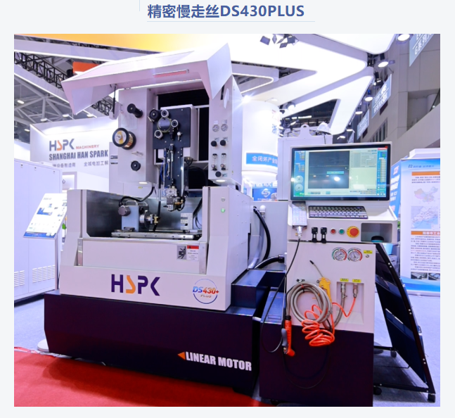 GS45L机型,四面整体升降液槽,可液位控制任意高度,可用于自动化线扩展,让操作更加便捷。新款手控盒、显示屏,让操作更加直观便捷。 自主研发的直线电机驱动,实现了快速响应与更高精度。非接触式传动系统,不仅速度快,还消除了机械磨损,减少客户后期维护成本。 智能定位系统,提高工作效率。优化的放电技术,让石墨和铜加工更上一层楼。 汉霸G高端牛头式火花机, 国内首创"单边自动升降液槽"门板可系统指令控制任意高度,传统液槽门结构需要人工闭合,手动密封,而我们的自动升降液槽,一键控制升降,调节至任意高度,免人工密封,更便捷! 主轴搭载轴心冷却技术,有效控制螺杆热延伸,提高加工精度和多位置精度一致性 操作系统持续迭代升级,新增加工方式, AUTO 自动加工依托丰富且强大的参数库模型,用户只需要选择加工条件及加工要求,系统即可自动生成匹配的放电参数 该模式简化并融合了"准备阶段"和"加工阶段"的操作步骤,以【智能驱动生产力】为核心概念,打造引导式会思考的智能操作系统,大幅减少设备的非生产时间,提高设备的生产时间,并降低人工熟练度与经验值。 精密线切割慢走丝新品发布:DS430 plus机型的表现同样亮眼,其X/Y 轴用直线电机驱动,搭配光栅尺闭环控制,保障长期加工精度; 自动穿丝系统以AC伺服张力轮稳控力,放电熔断技术优化铜线状态,高压空气与电子式滚轮排废线,确保加工流畅。 设备数控系统大屏设计,项目集中显示,自研操作系统易操作,用户选材料、线径等参数后,系统自动生成加工参数;加工中断时,BYPASS 功能可续加工提效。 作为升级款,它凭三大核心技术建自动化体系:电动上下门可联动自动化单元,融入柔性产线;七轴六联动技术能加工复杂工件,重复定位精度 ±2um、尺寸公差≤5um,打破进口设备垄断。 HF 高性价比系列全新的机械结构设计,导轨跨距加大,满足更大更宽的模具加工需求,操作使用起来更加便捷灵活。 坐标记忆功能,暂停返回起始点和加工中位置偏移,让各种场景操作更便捷。全新 AUTO 自动加工,减少人为干预及应用经验值,依托丰富且强大的参数库模型,用户只需要选择加工条件及加工要求,系统即可自动生成匹配的放电参数,让加工过程更加稳定可靠。 新款手控盒功能更强大,使用更方便。多头机型,提高更大的生产效率,缩短模具交期。