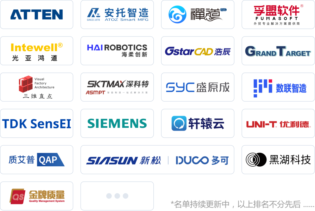 与行业龙头西门子、TDK SensEI、安托信息技术、优利德科技、中科新松、海柔创新、翰标、黑湖科技、浩辰软件、数联智造等100+展商齐聚制造业数字化领域“顶流聚会”。
