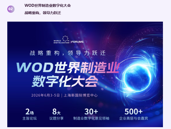 WOD2026重磅升级“6大垂直制造行业,2大前沿技术”展示区,以更精准的定位打通技术与产业的深度融合通道!通过“技术+行业”的双向聚焦,WOD2026将打破泛化展示的壁垒,让数字化服务商精准对接垂直行业痛点需求,让制造企业快速找到适配自身场景的定制化方案,实现供需两端的高效匹配与价值共创。
