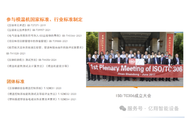 作为国标委TC186/SC2标准化创新示范单位,亿翔智能始终以技术革新推动行业进步。此次参展,公司特别设置“标准与创新”展示区,全面解读其参与制定的《模温机能耗测试及计算方法》《压铸辅助设备模温控制系统》等标准成果,彰显在温控领域的专业话语权。