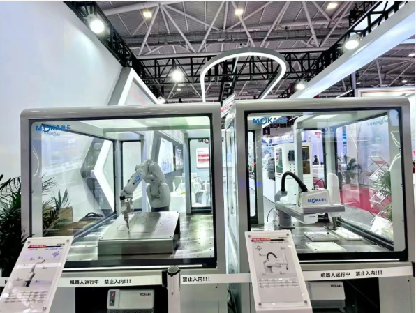 在本次展会上,藦卡机器人重点展示了多款产品包括六轴通用机器人、焊接机器人、压铸打磨专用机器人、SCARA机器人、冲压机器人等,当下产品负载从4KG-500KG。公司依托10余年机器人研发技术优势和自身强大的细分市场高效定制能力,赢得了广泛关注和赞誉。